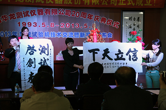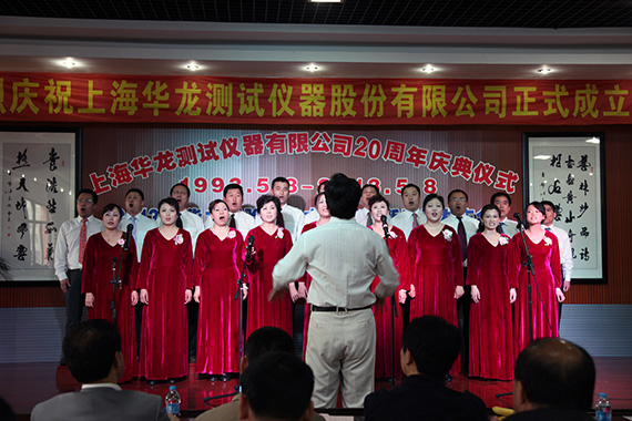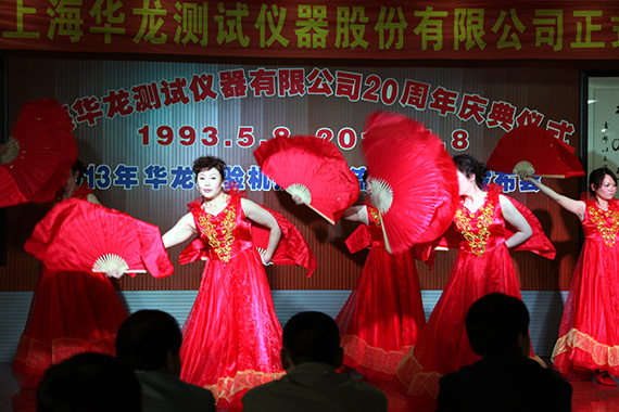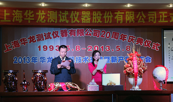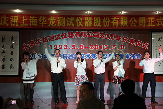 1993.5.8—2013.5.8上海華龍創立至今已走了二十年的風雨兼程、二十年的春華秋實、二十年的碩果豐杯、二十年的舉步輝煌。5月8日下午三時,華龍二十年慶典在八種新產品發布會的尾聲和隆隆的鞭炮聲伴隨拉開大幕,華龍樂隊奏響迎賓曲,主持人介紹川沙新鎮領導、寶鋼集團、武鋼集團、中鋼研集團、上海電氣、港機等主要來賓后,董事長盧長城先生向出席大會的386位嘉賓的到來致歡迎詞并回顧華龍20年來的成長歷程及步入股份建制后的企業發展方向。川沙新鎮領導、上海寶鋼、天水紅山等單位領導、專家代表王承中教授做了賀典致辭。主持人宣讀了一汽集團、國家電網、中國儀器儀表行業協會發來的賀電,會議展示了業內同仁、協作單位、客戶單位贈送的精美禮品。華龍員工精心排練的大合唱、詩歌朗誦、器樂演奏、獨唱、對唱、二人轉、秦腔、舞蹈等二十個節目,向各界嘉賓、專家、新老朋友做了精彩的獻禮演出,晚十八時三十分在九龍錦江大酒店,所有嘉賓與華龍員工共聚華龍二十周年生日晚宴。